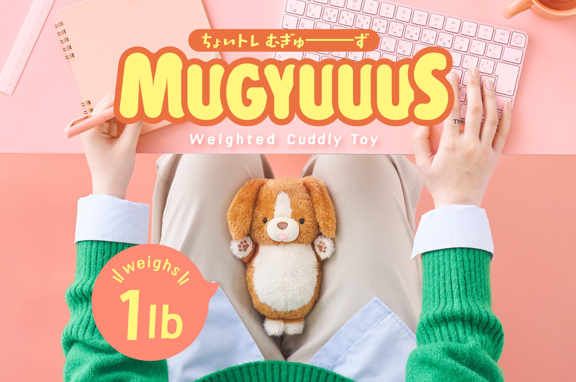 Exercise right at your desk while you work, study, or play with MUGYUUUS 1lb weighted cuddly toys!